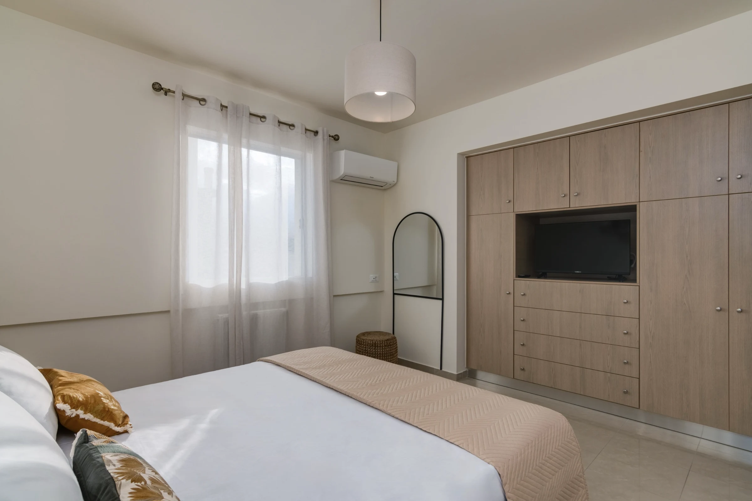 Each individual space has been carefully designed and fully equipped to suit all your needs. Specifically, the kitchen is fully equipped with cooking utensils, in the living room, there is a flat-screen TV, towels, sheets, care products, cleaning products, etc. are provided free of charge to make your stay care-free.