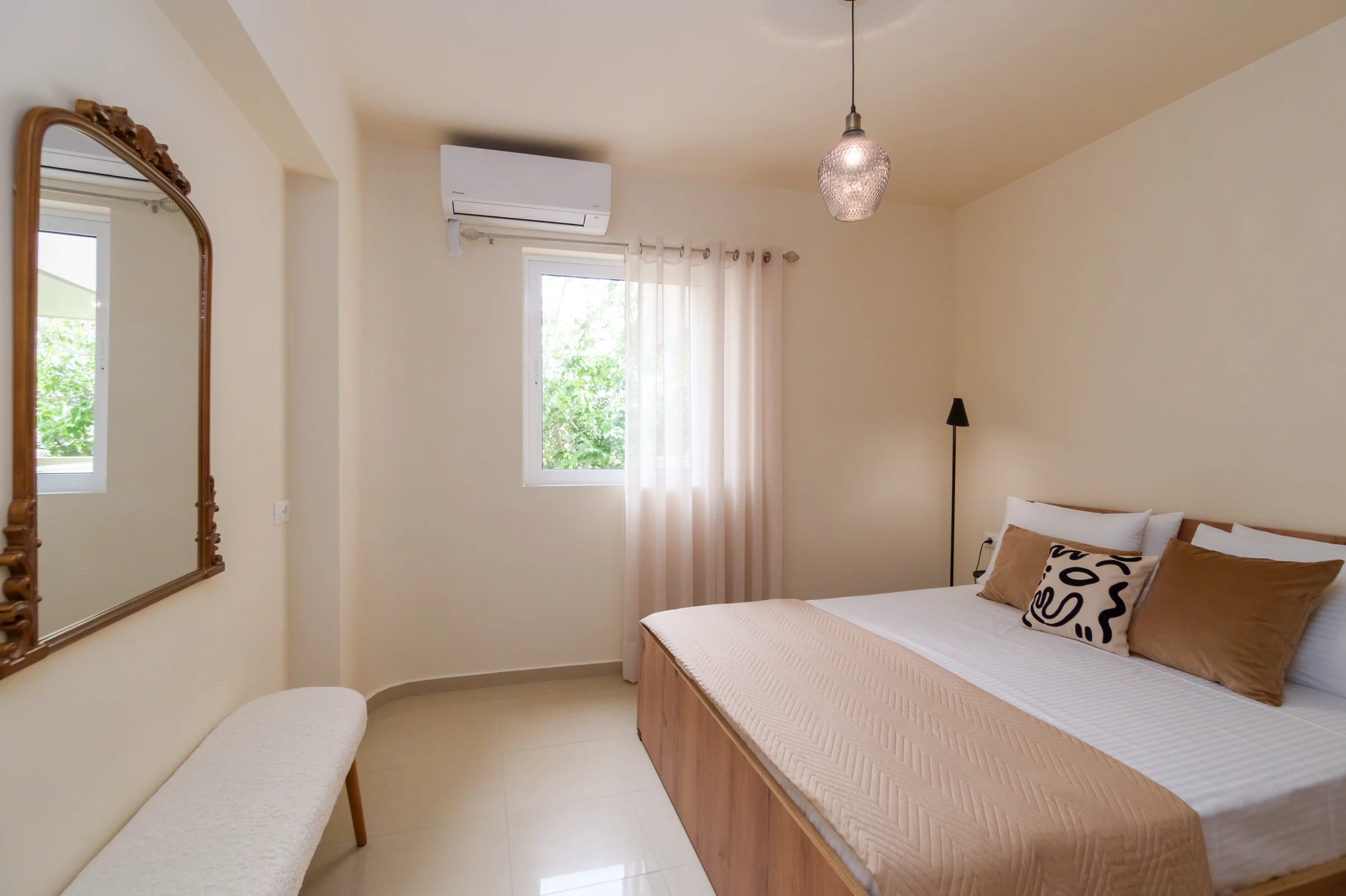 Each individual space has been carefully designed and fully equipped to suit all your needs. Specifically, the kitchen is fully equipped with cooking utensils, in the living room, there is a flat-screen TV, towels, sheets, care products, cleaning products, etc. are provided free of charge to make your stay care-free.